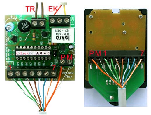CodeLock AVR electronic combination lock is realized with Atmel AVR microcontroller AT90S2313 or ATtiny2313. Program in hex code is 2 kB long. User code is consisted of 1 to 4 digits. If you buy the chip than user code is consisted of 1 to 8 digits. If the code is entered in the correct sequence, then after 1 second the relay and the electric striker (in the door) switch on for 1 second and then switch off again. User code can be changed via 3x4 matrix keypad. Keypad for CodeLock can be bought at local electronic shop. Initial user code (1234) is set up with a jumper. The jumper must be inserted before the voltage (12V) connection. The jumper must be removed after 2 beeps (after 5 to 15 seconds).